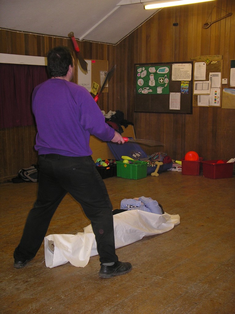 A man juggling knives over Carol